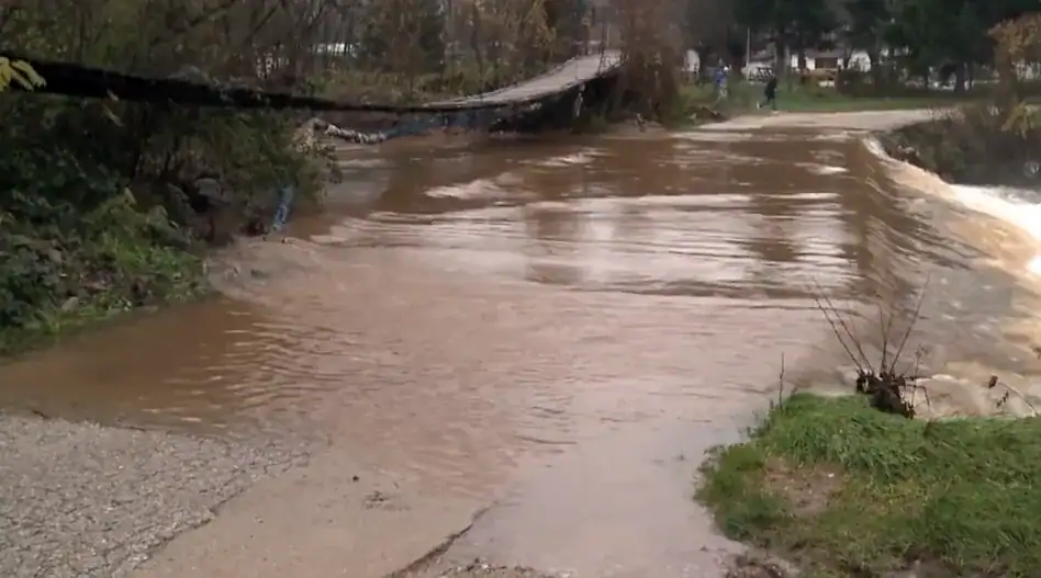 Kada nema padavina i vodostaj je nizak meštani mogu gotovo bezbedno da koriste viseći most kako bi prešli sa jedne obale reke na drugu. Međutim, voda se sada brzo kreće a blizu je visećeg mosta, te je prelazak rizičan. Situacija na terenu nimalo nije naivna.