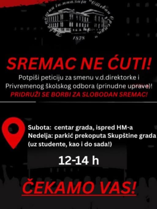 Nakon meseci rada u atmosferi straha i nepoverenja, nastavnici, roditelji i bivši učenici odlučili su da institucionalnu borbu prenesu na trgove. Na prošlonedeljnom protestu su zahtevali smenu v. d. direktorke i raspuštanje Privremenog školskog odbora koji je nametnut školi, a sada idu korak dalje – pokrenuli su peticiju za smenu.