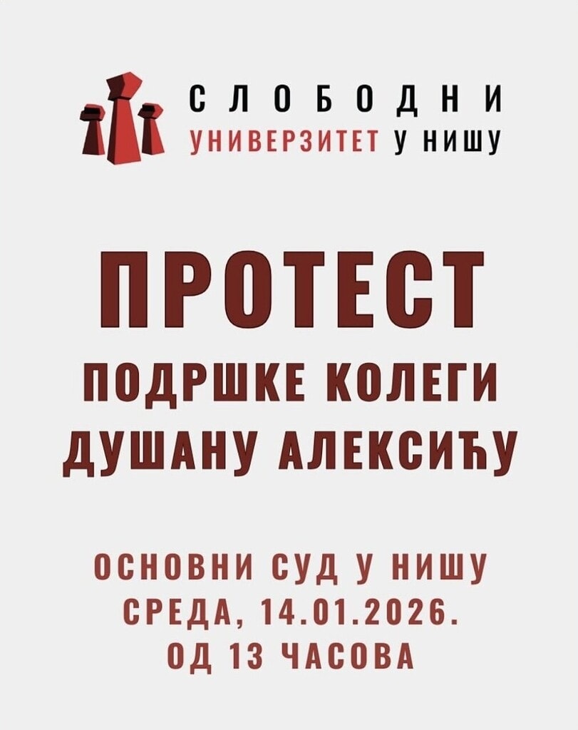 Podsetimo, Aleksić je tokom 2025. godine bio jedan od najglasnijih u odbrani akademskih sloboda, zbog čega je, prema rečima njegovih kolega, bio meta targetiranja. Sutrašnji skup ispred suda biće prilika da Niš pokaže da li će dozvoliti da se kritička reč na Univerzitetu kažnjava sudskim postupcima.