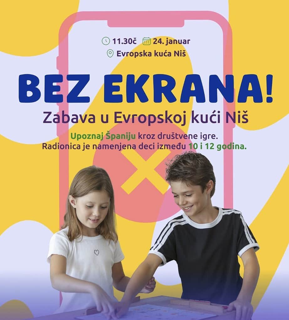 Evropska kuća Niš, u saradnji sa organizacijom „Nauči me“, organizuje u subotu, 24. januara, radionicu španskih društvenih igara za decu uzrasta od 10 do 12 godina. Program počinje u 11.30 u prostorijama na adresi Vožda Karađorđa 5.