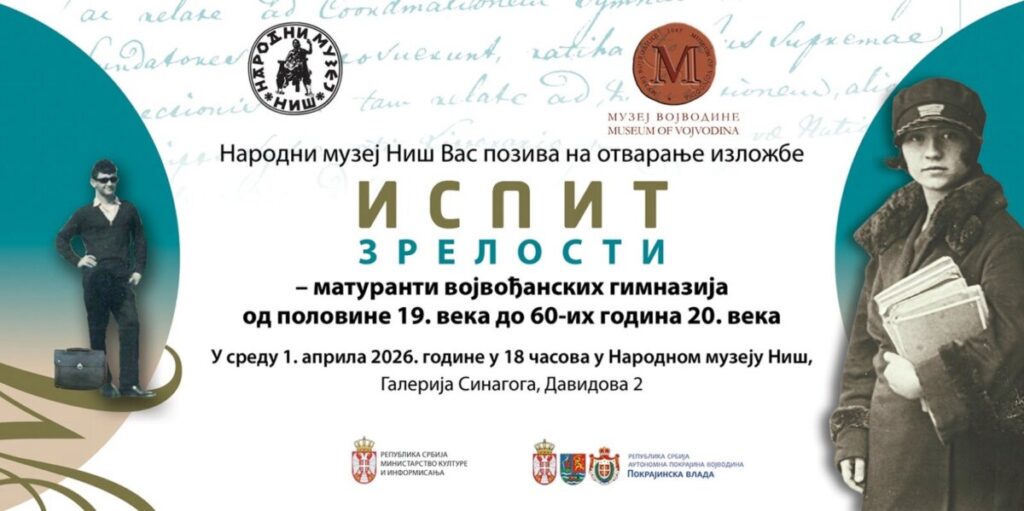 Narodni muzej Niš otvoriće danas, 1. aprila, izložbu pod nazivom „Ispit zrelosti – maturanti vojvođanskih gimnazija od polovine 19. veka do 60-ih godina 20. veka”.