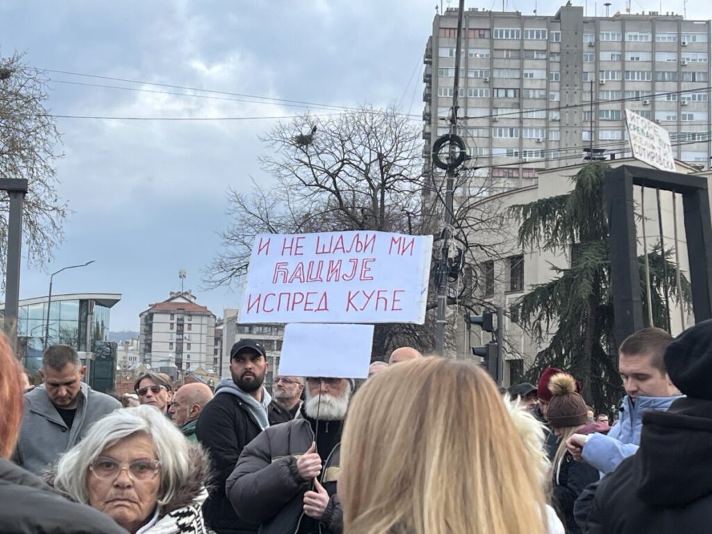 Skup je počeo na raskrsnici ispred Osnovnog suda, gde je održano šesnaest minuta tišine – uz poruku da je prošlo sedamnaest meseci od tragedije u kojoj je stradalo šesnaest osoba, a da je broj odgovornih i dalje nula. Okupljeni su se zatim, uz buku pištaljki i vuvuzela, uputili u protestnu šetnju do Banovine.