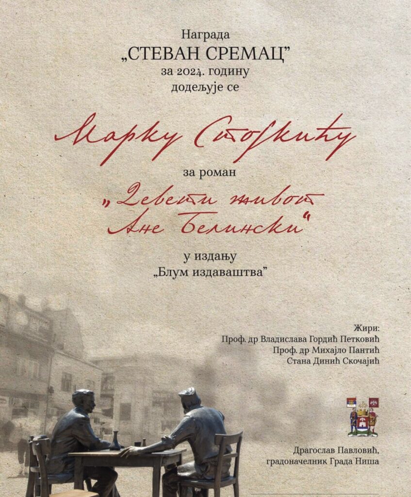 Svečano uručenje planirano je u novembru, u okviru manifestacije „Dani Stevana Sremca”. Podsetimo, prošlogodišnji dobitnik ovog priznanja je Marko Stojkić za knjigu „Deveti život Ane Belinski”.