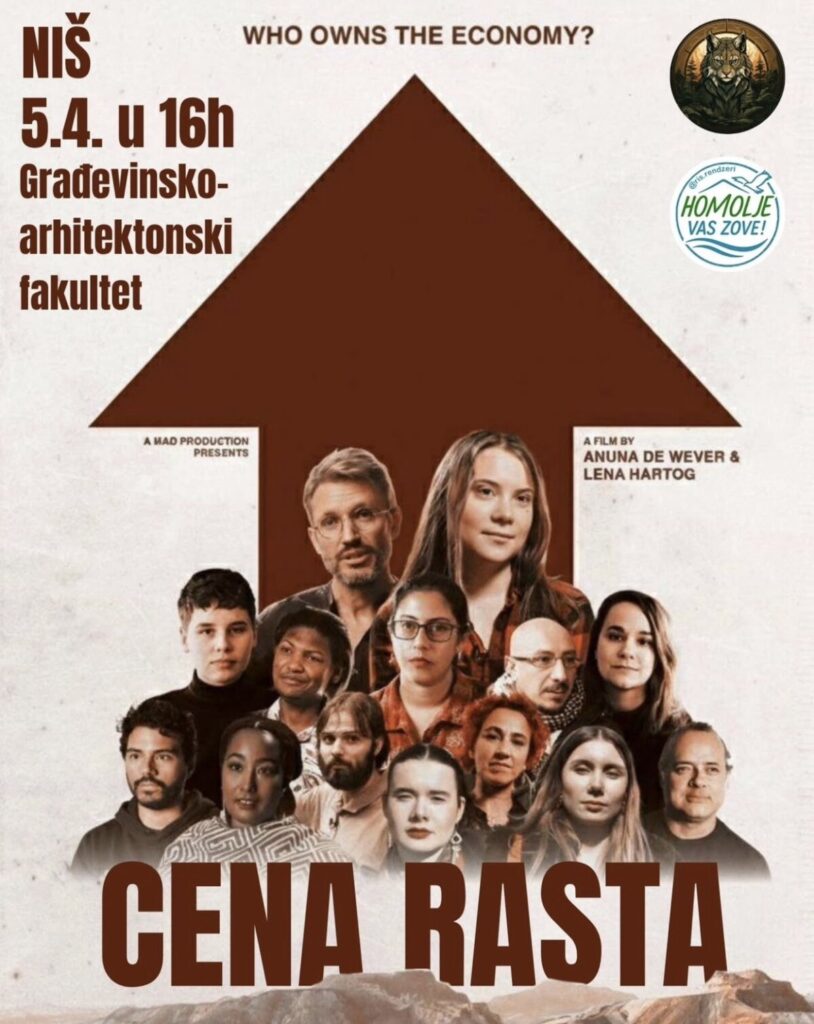 U okviru nacionalne turneje, organizacija „RIS rendžeri” priređuje u Nišu projekciju dokumentarnog filma „Cena rasta” u nedelju, 5. aprila u 16 sati, u amfiteatru A Građevinsko-arhitektonskog fakulteta.