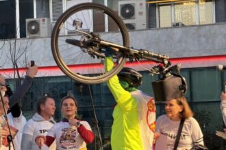 Studenti u blokadi Univerziteta u Nišu organizovali su danas prvu ovogodišnju bicikladu i protestnu šetnju. Skup je, uz učešće dece, profesora i građana, završen ispred zaključane zgrade Rektorata.
