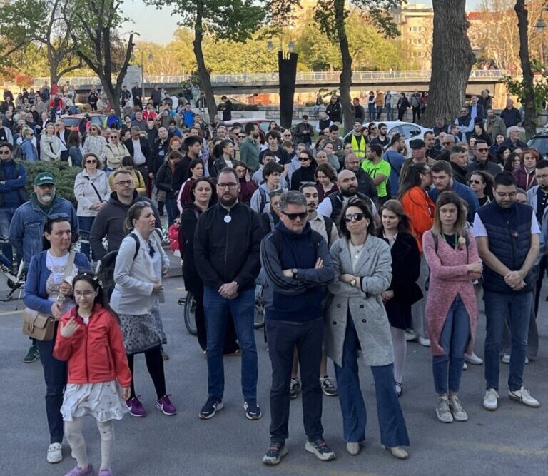 Iako je planirano da se poruka istakne na zgradi Rektorata, okupljene su dočekala zaključana vrata, čime je onemogućeno postavljanje transparenta.