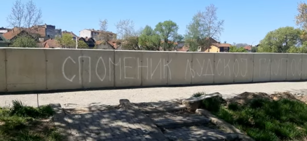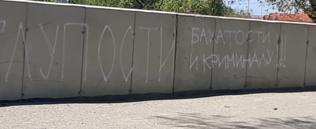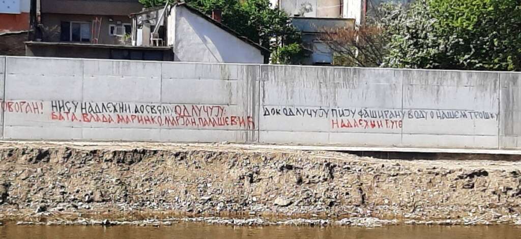 Građani Vlasotinca ispisali su seriju kritičkih grafita na novom betonskom zidu pored reke Vlasine, čime su odgovorili na martovsko ignorisanje peticije i policijsku intervenciju protiv studenata koji su pokušali da spreče nastavak izgradnje betonskog bedema.