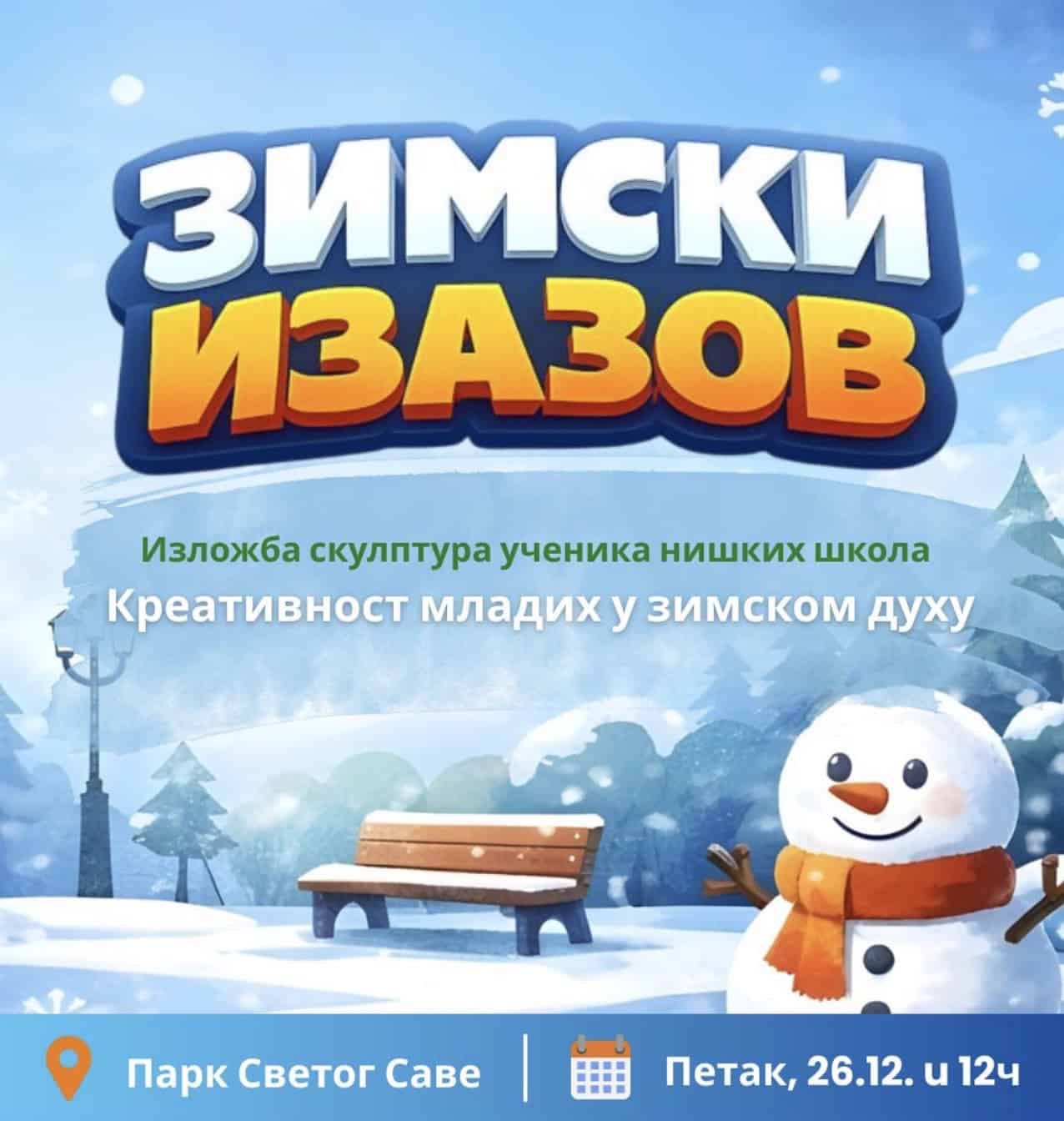 Gradska opština Medijana organizuje sutra, 26. decembra, manifestaciju „Zimski izazov“ u okviru projekta „Medijana vesnik čistog grada“. Zimski izazov počinje u podne – u Parku Svetog Save. Učen...