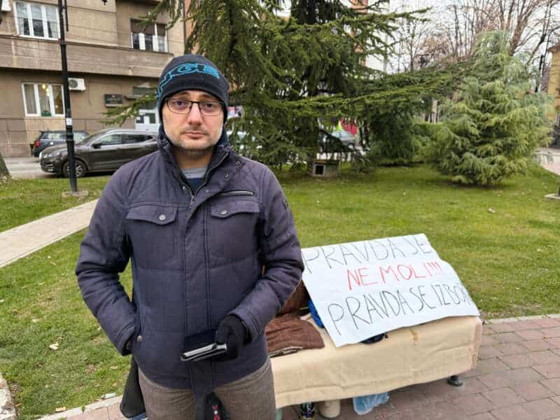 Na klupi ispred zgrade suda u Nišu, od petka traje tihi protest Nenada Mladenovića. Štrajkuje glađu i neprestano je napolju jer tvrdi da je žrtva pravosudne opstrukcije pa je odlučio da sopstvenim tel...