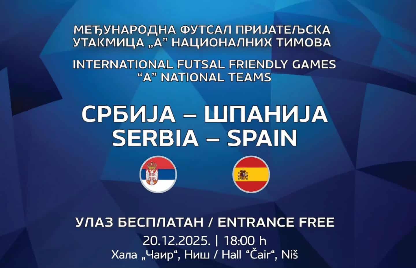 Ljubitelji futsala u Nišu imaće retku priliku da u danas, 20. decembra, uživaju u istinskom sportskom spektaklu. Reprezentacija Srbije u Hali Čair dočekuje moćnu Španiju, sedmostrukog šampiona Evrope ...